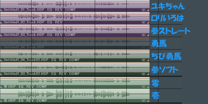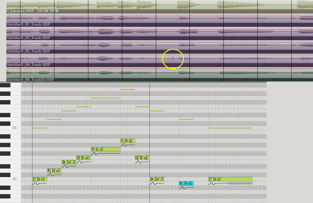 勇馬は何故か「れ」の発音の前に「ボッ」というノイズが入ってしまったので、ちびにしてオクターブ上歌わせました。