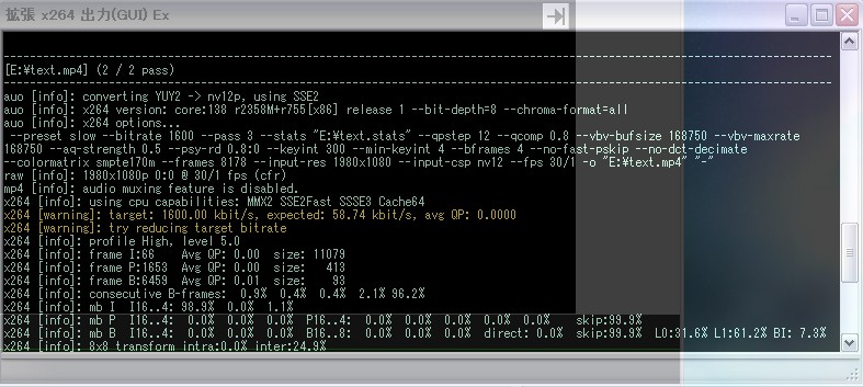 エンコ中にエラー「warning」って表示されるし…